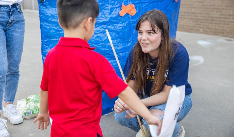 East Texas Baptist University’s Learning and Leading classes hosted Fall Festivals for all five of Marshall ISD’s elementary schools, including David Crockett Elementary, Sam Houston Elementary, William B. Travis Elementary, Price T. Young Elementary, and Marshall Early Childhood Center School on Monday, October 10 to serve nearly 1,000 elementary students and their families.